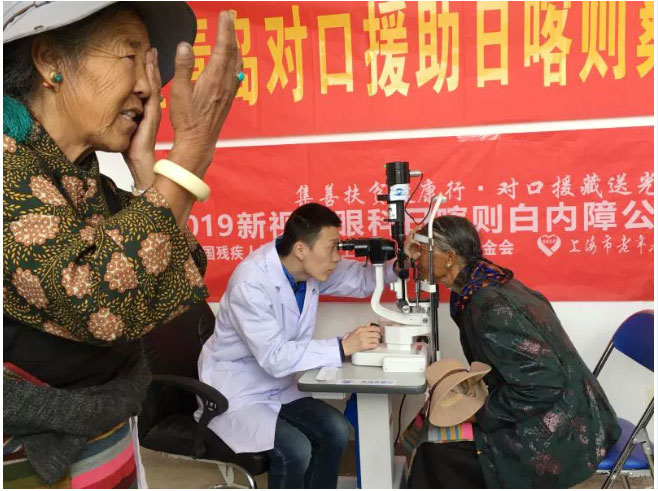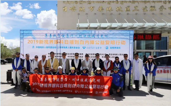 为贯彻党中央扶贫攻坚,用实际行动践行援藏工作指示,使广大农牧民白内障患者重获光明,2019年7月22日下午,由中国残疾人福利基金会、上海市残疾人福利基金会、上海市老年基金会、山东省互联网传媒集团、中共李沧区委统战部、李沧区卫生健康局、李沧区残疾人联合会、新视界眼科集团主办,上海青年志愿者协会、青岛新视界眼科医院等联合承办的“ 集善扶贫健康行 · 对口援藏送光明 ”2019新视界眼科日喀则白内障公益复明行动的落地仪式在西藏日喀则市桑珠孜区人民医院举行。