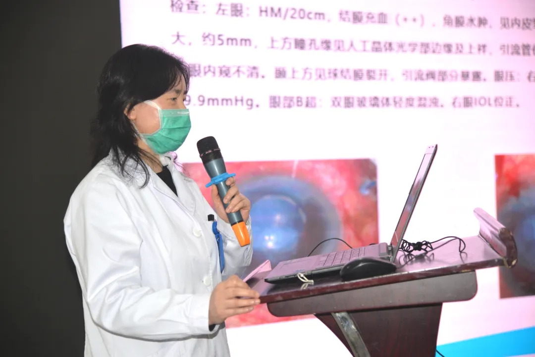 江毅主任分享了两例浅前房病例:一例为外伤致引流阀断裂导致前房消失,眼压增高;一例为新生血管性青光眼、硅油眼,引流阀植入术后前房消失,眼压增高;大家各抒己见,分析浅前房原因,手术处理技巧及预防措施。
